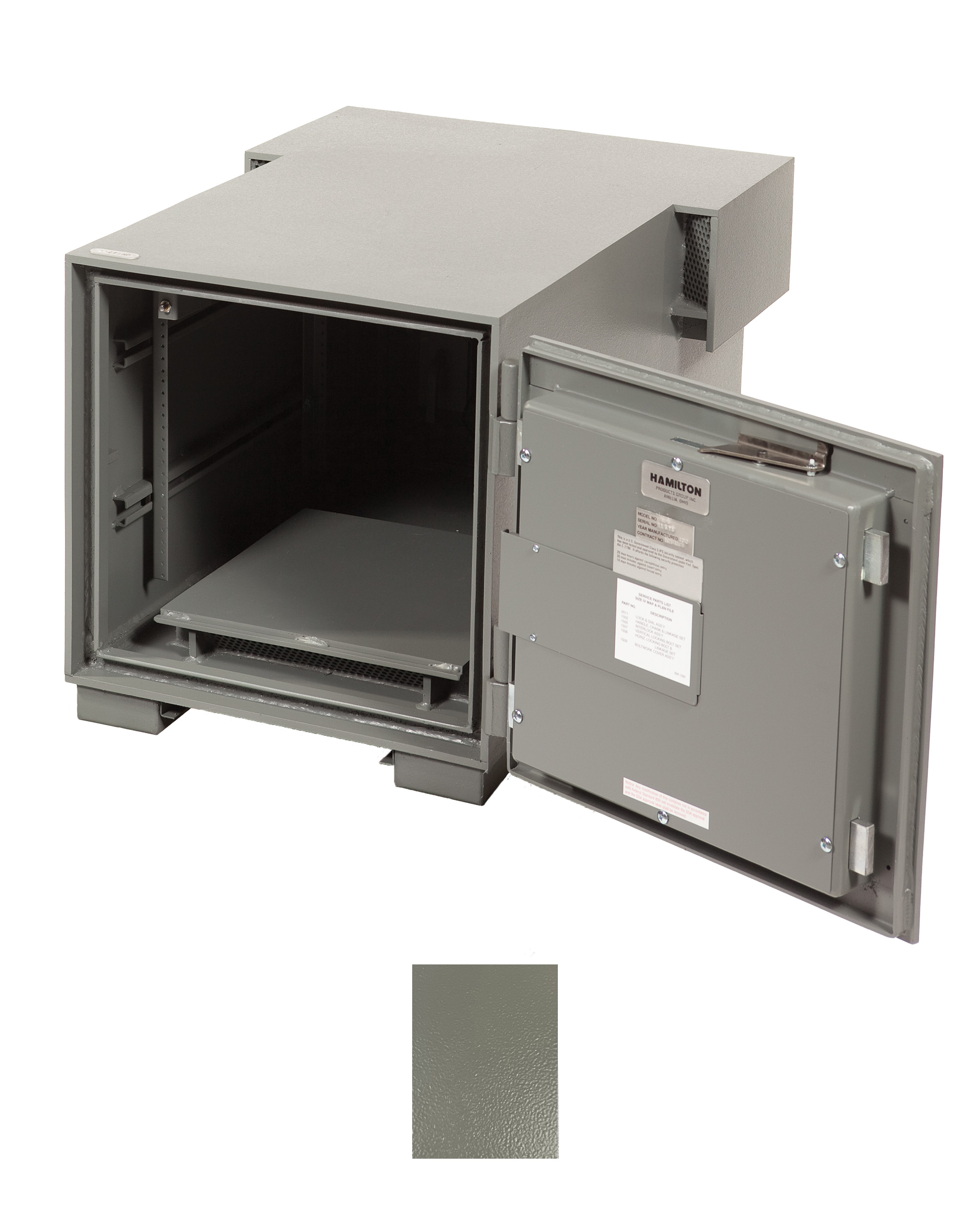 - Two (2) fans located in the top of the cabinet to evacuate the interior air. Fans are 115 v 4" dia., 105 CFM free air each